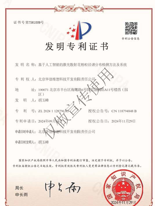 花粉粒徑譜分布檢測方法及系統(tǒng)獲得國家發(fā)明專利